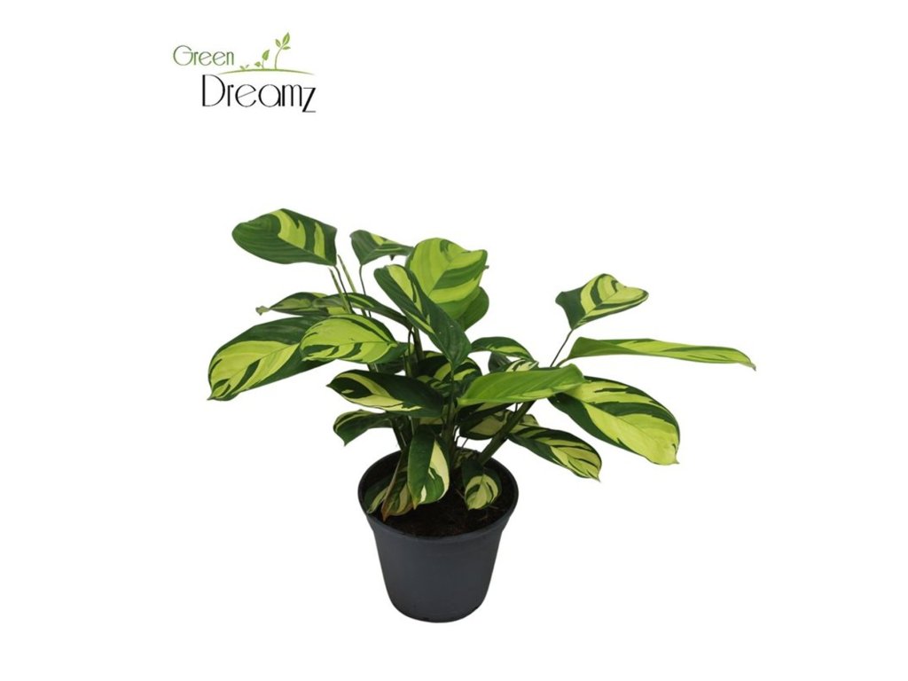 Pro zachování intenzivního zlatožlutého vzoru poskytněte rostlině dostatek rozptýleného světla, ale nikdy přímé slunce, které by listy popálilo. Vysoká vlhkost vzduchu je klíčová - pravidelně roste měkkou vodou (ideálně odstátou) a umístěte květináč na misku s mokrými kamínky. Hnědé okraje listů signalizují nízkou vlhkost vzduchu nebo tvrdou vodu. Rostlina je citlivá na fluoridy a chlor ve vodě, proto vždy používejte odstátou vodu.