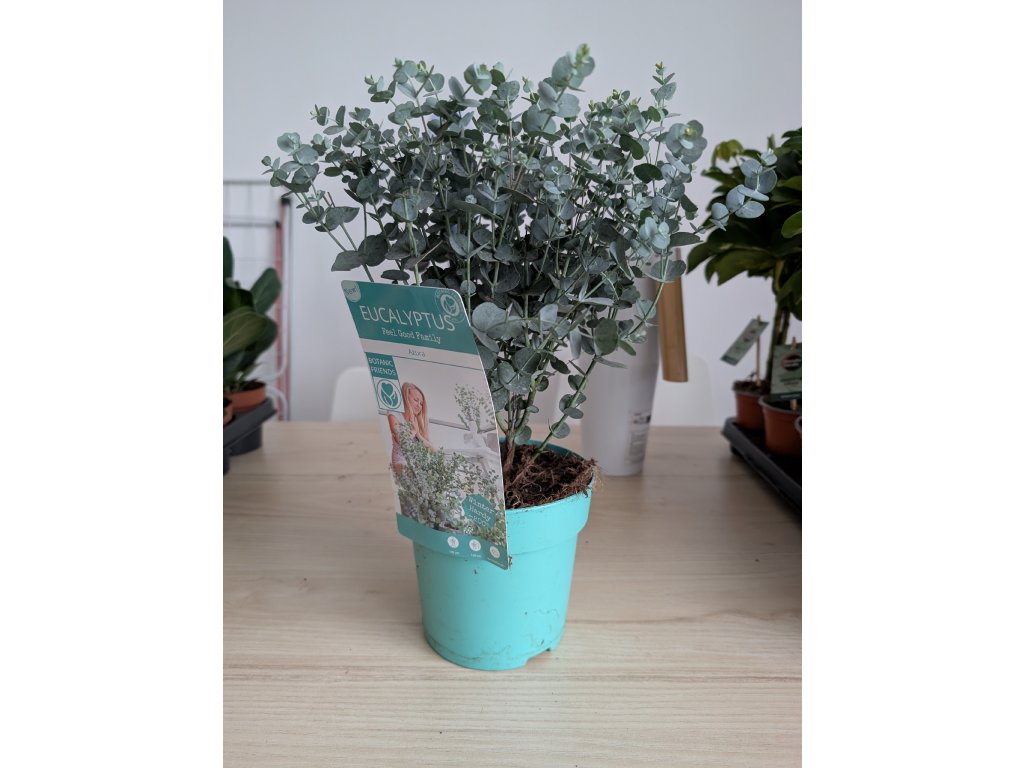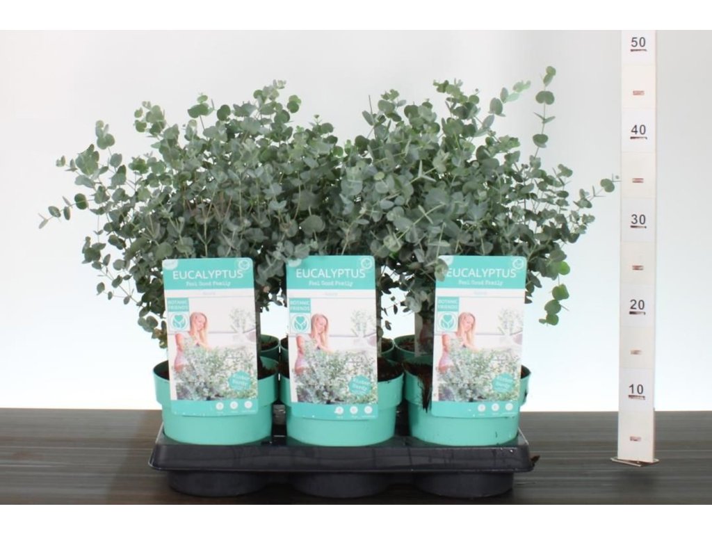 Eucalyptus gunnii 'Azura'®, známý také jako Blahovičník Gunnův, je okouzlující stálezelený keř s charakteristickými kulatými, modro-šedými listy pokrytými voskovým povlakem. Tato aromatická rostlina pochází z Tasmánie a Austrálie, kde roste ve volné přírodě. Odrůda 'Azura'® je speciálně vyšlechtěná pro svou vyšší mrazuvzdornost a kompaktnější růst, což ji činí ideální volbou pro pěstování v našich podmínkách. Listy eukalyptu jsou eliptické až oválné s výraznou šedomodrou až stříbrně zelenou barvou, která dodává rostlině elegantní a vzdušný vzhled. Typickým znakem jsou vonné silice, které se uvolňují z listů do okolního ovzduší a vytváří příjemnou svěží vůni po mentolu a citronové trávě. Tyto silice pozitivně působí na dýchací cesty a pomáhají při astmatu, senné rýmě a bronchitidě. Uprostřed léta se na rostlině objevují drobné bílé květy v malých hroznech. V pokojových podmínkách může blahovičník dorůst výšky 60-150 cm, při pěstování venku v zahradě až 2-3 metry. Eucalyptus gunnii 'Azura'® je velmi všestranná rostlina - lze ji pěstovat jako solitérní rostlinu v okrasném květináči na terase či balkoně, jako kompaktní keř v zahradě nebo jako pokojovou rostlinu s letněním. Výraznou bonusovou vlastností je, že eukalyptus přirozeně odpuzuje komáry, mouchy a moly. Blahovičník Gunnův patří mezi nejodolnější druhy eukalyptu a při správném zazimování přežije teploty až do -15°C, krátkodobě dokonce až do -20°C. Existuje přibližně 700-800 druhů eukalyptu, ale právě Eucalyptus gunnii je nejčastěji pěstovaný druh v našich podmínkách díky své nenáročnosti a mrazuvzdornosti.