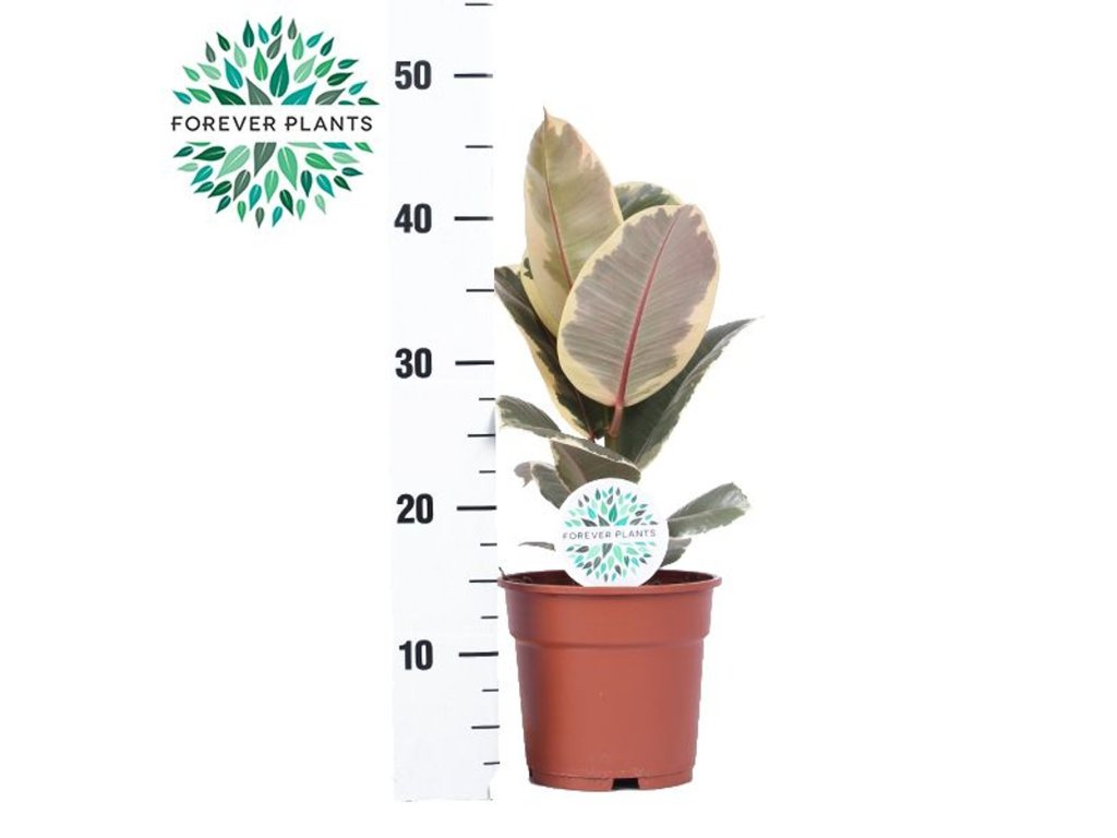 Ficus elastica 'Tineke', známý jako kaučukovník 'Tineke', je oblíbená panašovaná odrůda s nádhernými trojbarevnými listy. Velké lesklé listy kombinují tmavě zelenou, světle krémovou až bílou a jemně růžovou barvu, která je nejvýraznější na mladých listech a středních žilkách. Tato efektní rostlina je kompaktnější než klasický zelený kaučukovník a díky své nenáročnosti a atraktivnímu vzhledu patří mezi nejoblíbenější panašované pokojové rostliny.