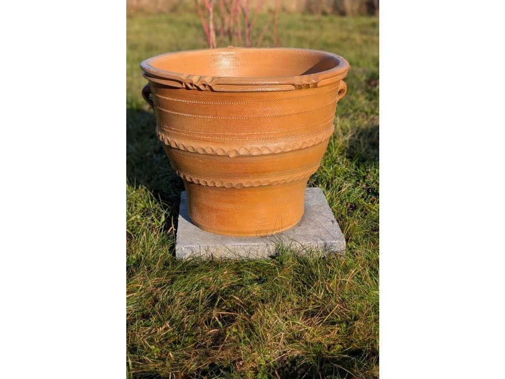 - Vypalování: Květináč je vypalován dřevem při teplotě 1000 °C, což zajišťuje jeho odolnost a kvalitu.
