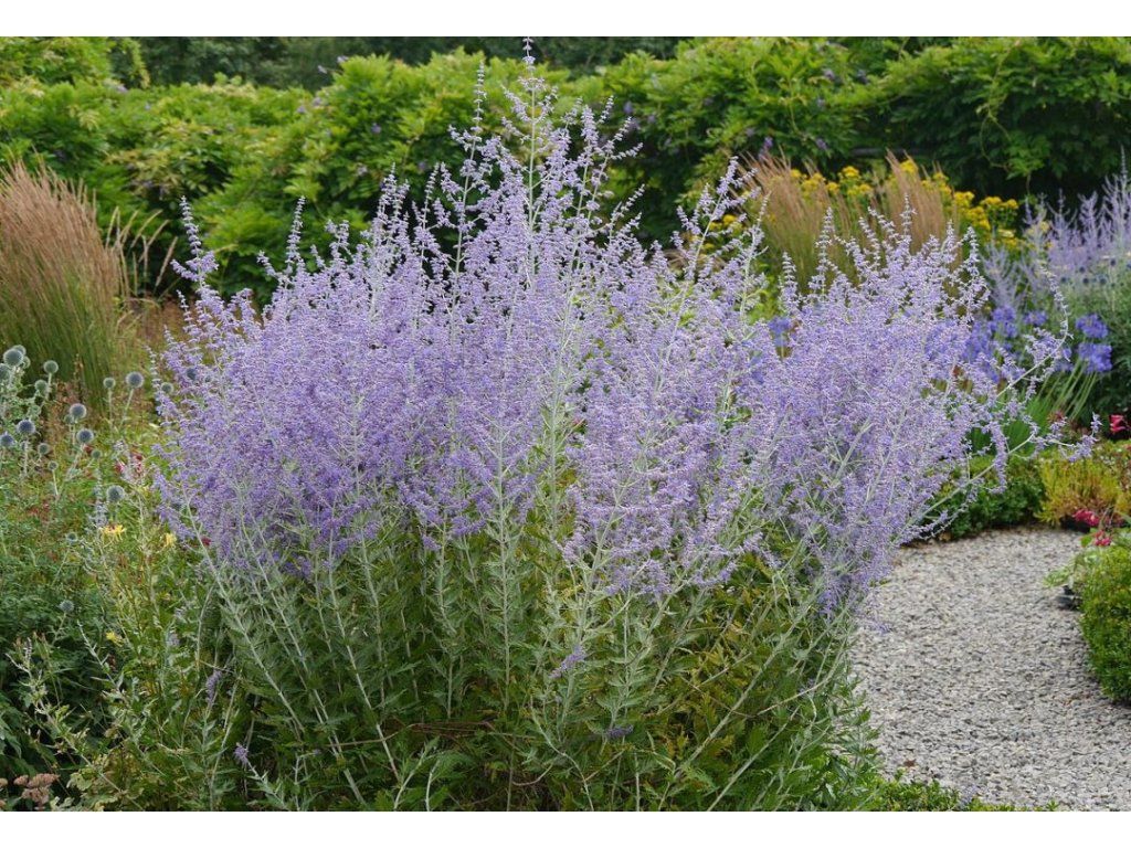 Perovskie 'Blue Spire' – vzdušná polokeřovitá trvalka s lavendulově modrými klasy a stříbřitě šedým aromatickým listem, která od července do října zaplní záhon mlhou modré barvy. Sucho nevadí, mráz nevadí, chudá půda nevadí. Skvělá do přirozených a gravuózních výsadeb.
