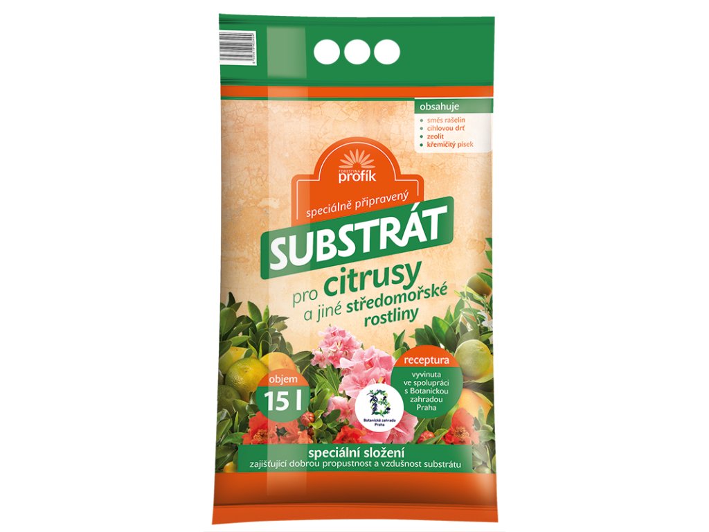 Profesionální substrát pro citrusy, oleandry, palmy a další letněné rostliny. Speciální směs rašelin, cihlové drti, zeolitu a křemičitého písku zajišťuje optimální propustnost, provzdušnění a vysokou schopnost vázat živiny. Receptura vyvinuta ve spolupráci s Botanickou zahradou Praha. Balení 15 l včetně startovacího hnojiva.