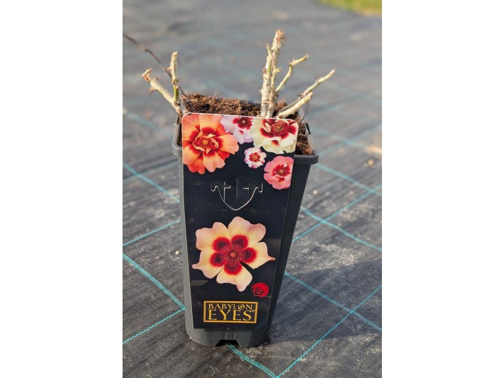 Růže ‘Babylon Eyes’® (Rosa ‘Babylon Eyes’) je unikátní hybrid perské růže (x Hulthemosa) z dílny nizozemských šlechtitelů Interplant. Každý květ zaujme sytě žlutými okvětními plátky s výrazným tmavě červeným okem uprostřed – kombinace, která nemá mezi růžemi konkurenci a na první pohled evokuje exotické perské vzory, podle nichž série Babylon Eyes získala název.