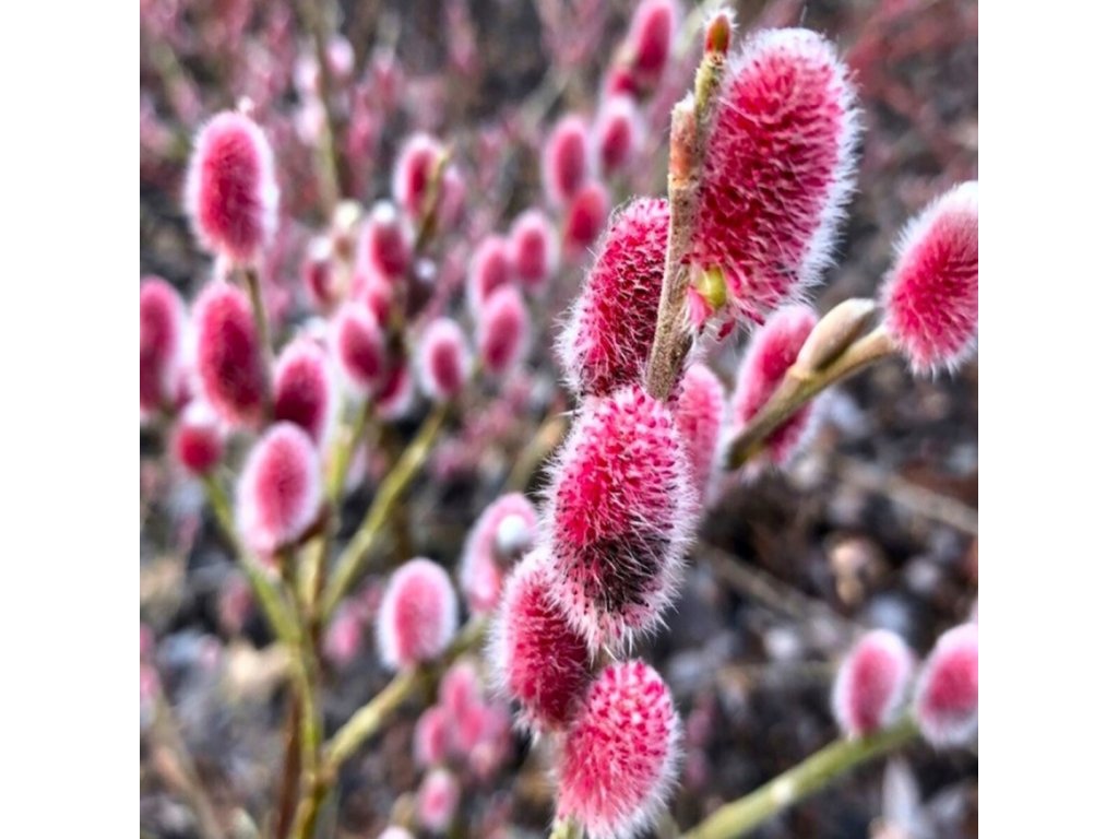 Vrba 'Mount Aso' je skutečný skvost jarní zahrady. Již na konci zimy, ještě než se probudí okolní rostliny, vyraší na holých větvích hedvábně stříbrné kočičky, které se postupně zbarvují do jemně růžové až sytě malinové barvy – pohled, který vás každý rok překvapí a potěší.